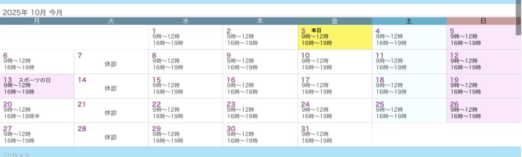遅くなりましたが今回は10月の診療時間のご案内になります