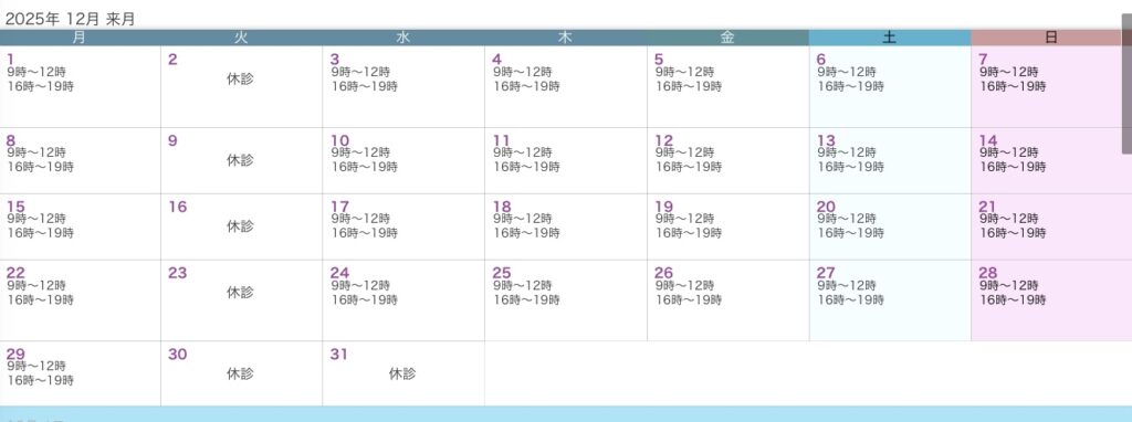 今回は12月の診療時間のご案内になります。